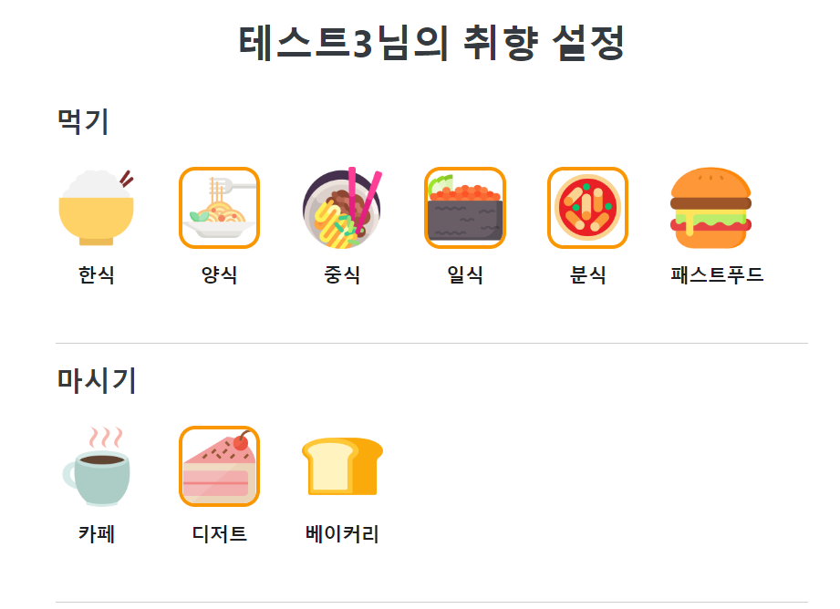 프로젝트를 진행하면서 사용자의 취향 키워드를 수정하는 화면에서 아래와 같은 식으로 클릭한 요소를 표시할 수 있도록 작업 중이었다.
