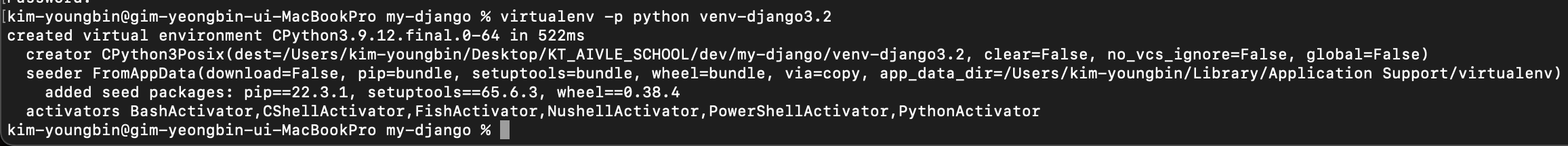 장고 3.2버전을 사용하는 가상환경이라고 표시하기 위해 venv-django3.2 라는 이름의 가상환경을 만들어주었다.