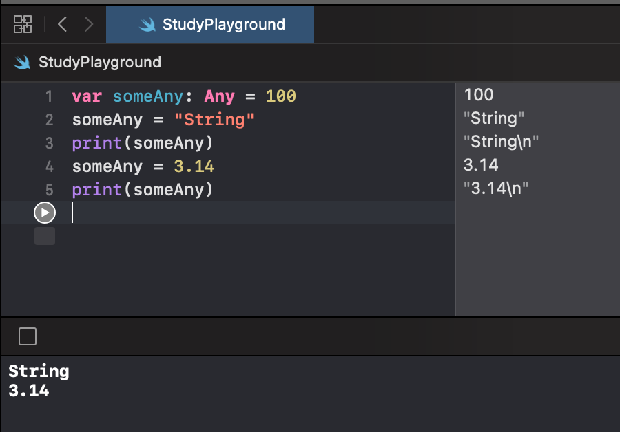 Any 타입의 변수에는 어떤 값이든 할당 가능하다. (하지만 빈 값인 nil은 할당할 수 X)