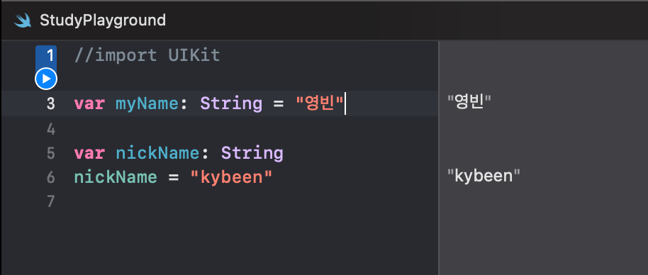 ※ 참고로 Swift에서는 이름 규칙으로 CamelCase 방식을 사용한다.