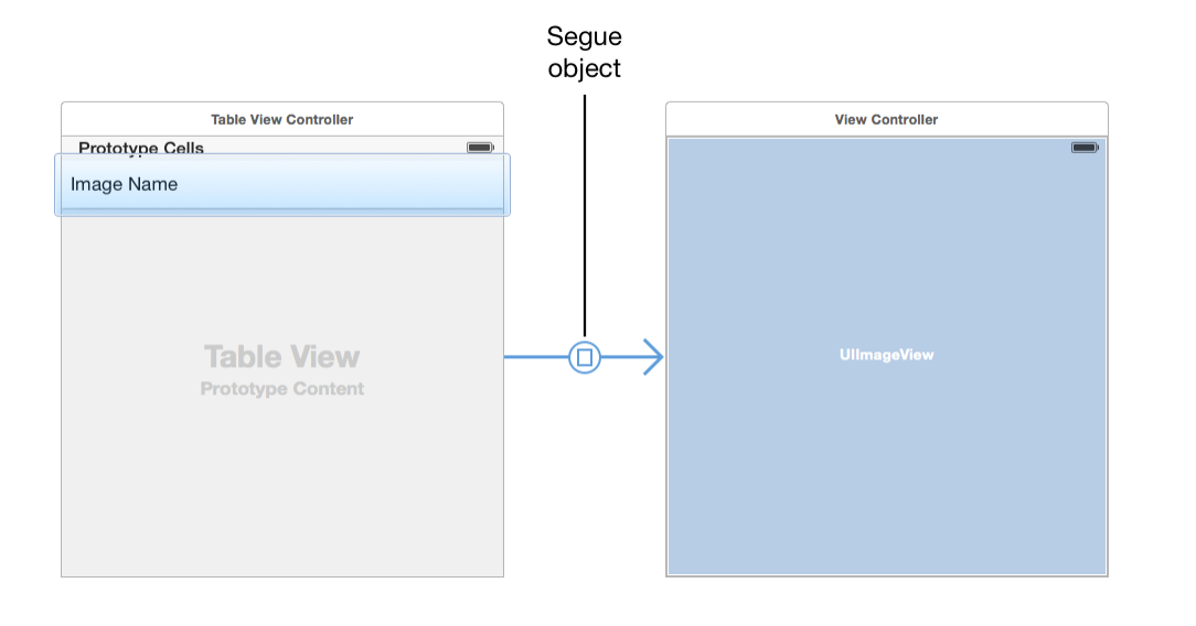 세그웨이는 스토리보드 상에서 뷰 컨트롤러 사이에 있는 화살표로 표시된다. 이 때 화살표는 한쪽으로만 흐르는 일방통행이다.