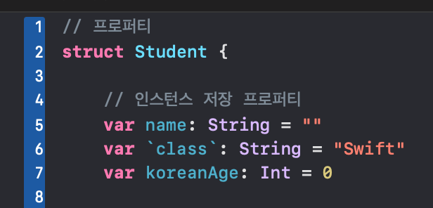 // 인스턴스 저장 프로퍼티