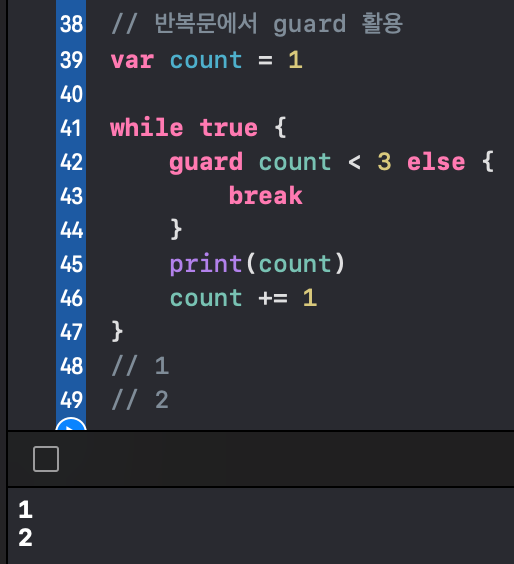 // 반복문에서 guard 활용