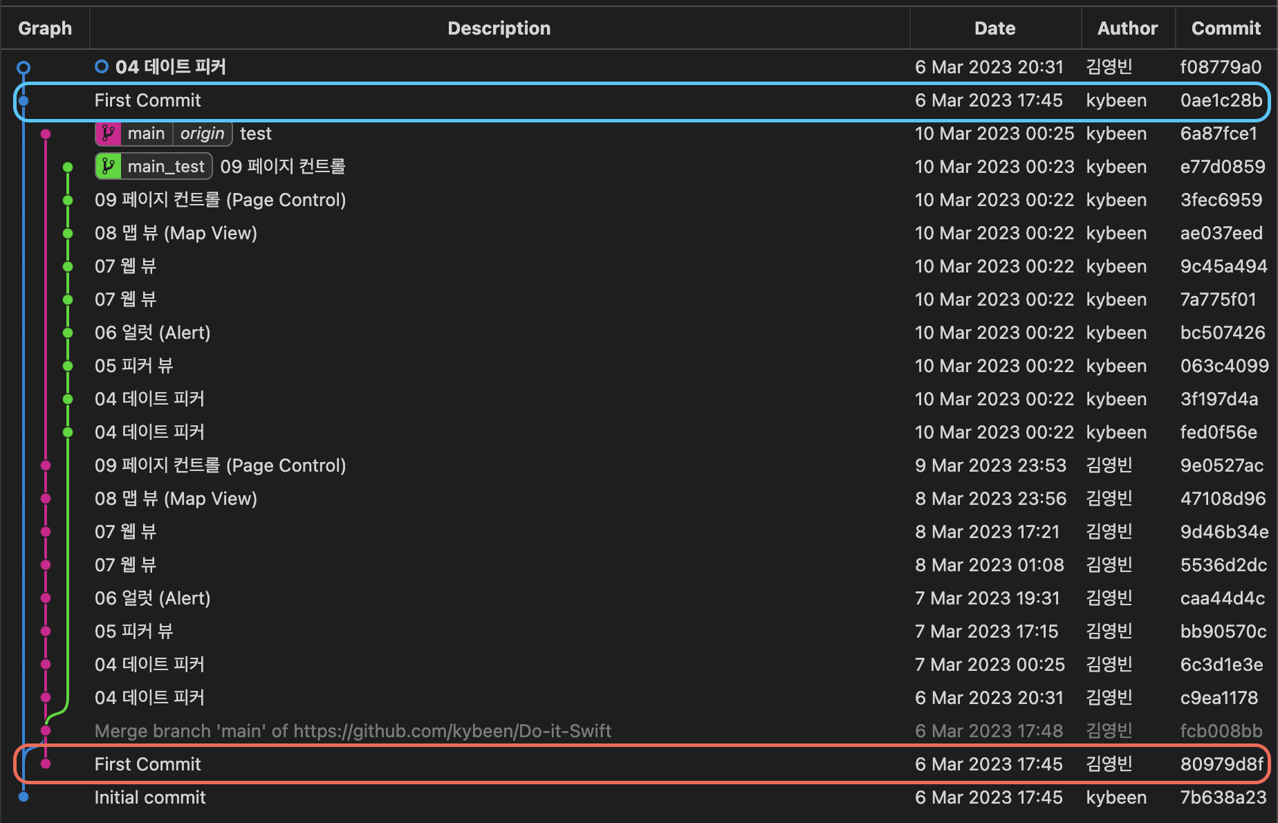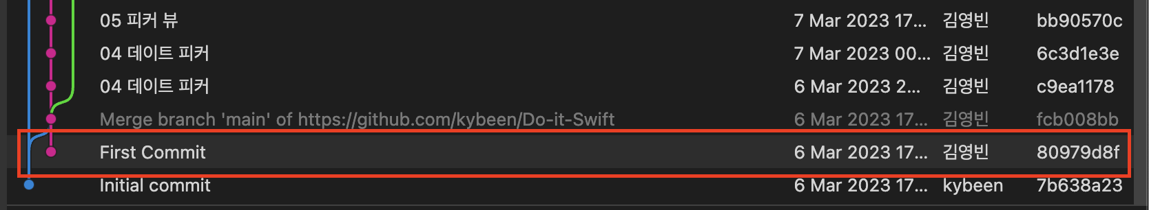 이전의 80979d8f 커밋이 author명이 바뀐 채로 0ae1c28b 커밋으로 바뀌었다!