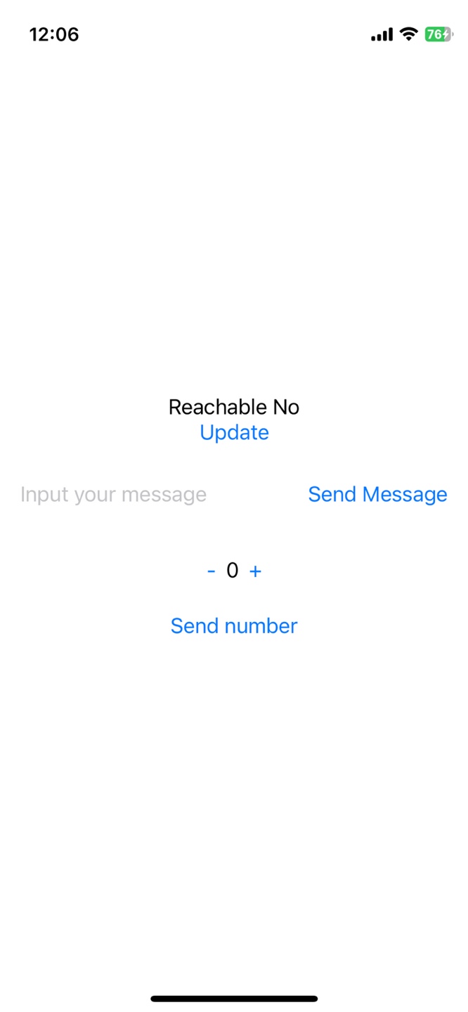 샘플 iOS 앱에서는 Send Message 버튼을 눌렀을 때 sendMessage() 메서드를 통해 입력한 텍스트 메세지가 watchOS 앱으로 전송됩니다. 이 버튼은 애플워치가 백그라운드 상태일 때는 동작하지 않습니다.