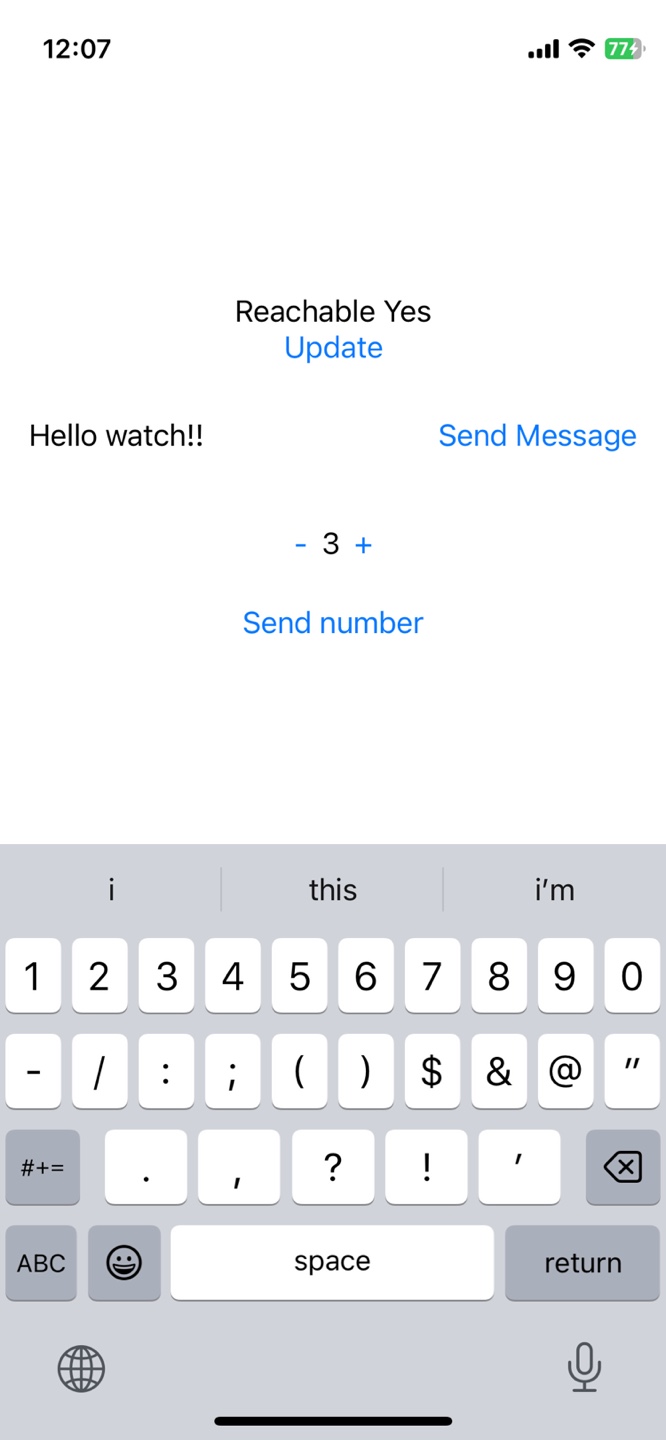 /** 텍스트를 입력하고, 버튼을 누르면 애플워치로 데이터가 전송됨 */