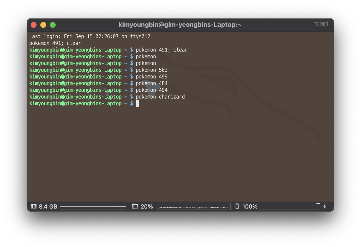 ⚠️ 나만 그런건 아닌 것 같고, iTerm에서 pokemon 커맨드를 입력해도 적용이 되지 않는 문제가 있는 것 같다. (커맨드를 찾을 수 없다고 뜨는게 아니라 그냥 적용이 안됨)