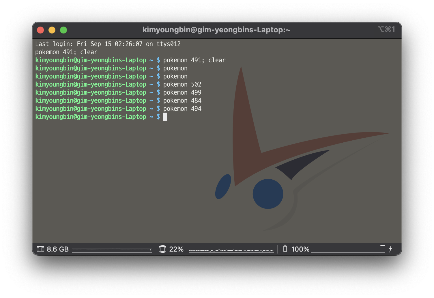 iTerm을 열 때마다 랜덤한 포켓몬이 나오게 하고 싶으면 pokemon을 해주면 되겠다.