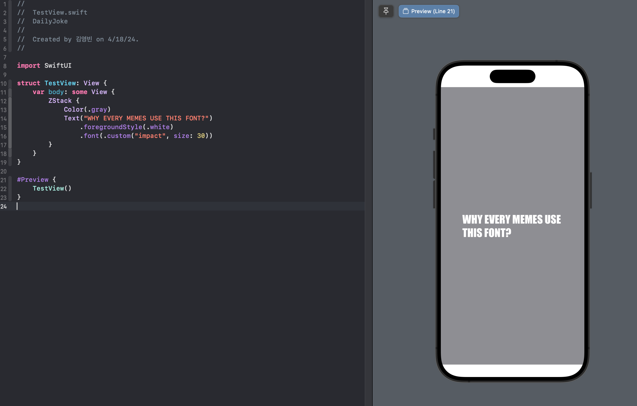 이 포스팅은 SwiftUI에서 사용하는 법을 다루는 것이 메인이기 때문에, Impact 폰트가 밈에서 많이 쓰이게 된 유래에 대한 설명은 아래 글을 참고해주시면 될 것 같습니다.
