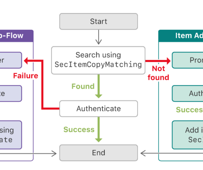 - 사용자가 인증 후 credential을 제공하면 앱은 SecItemAdd(_:_:) 함수를 호출하여 credential을 키체인에 저장하게 됩니다.