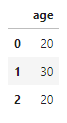 df = pd.DataFrame([ {"age" : 23}, {"age" : 36}, {"age" : 27}])