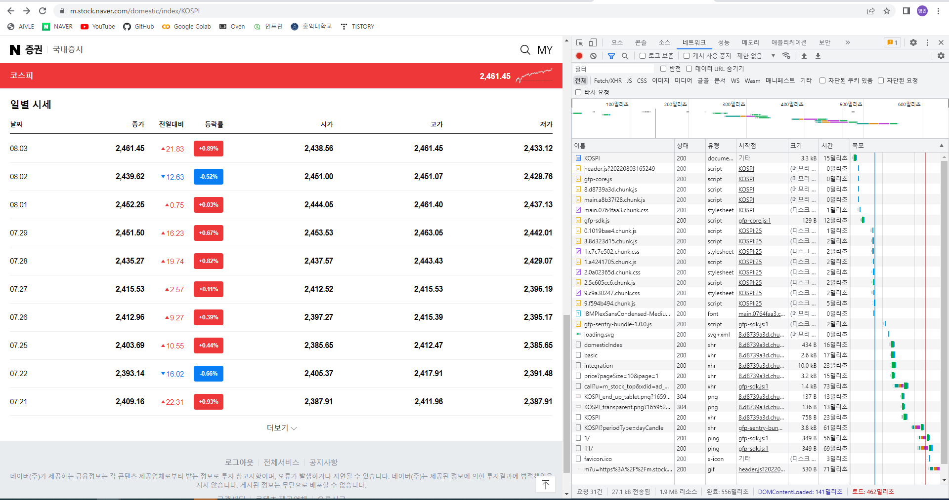 - 웹서비스 분석 : 크롬 개발자 도구 > 데이터 요청 URL 찾아내기