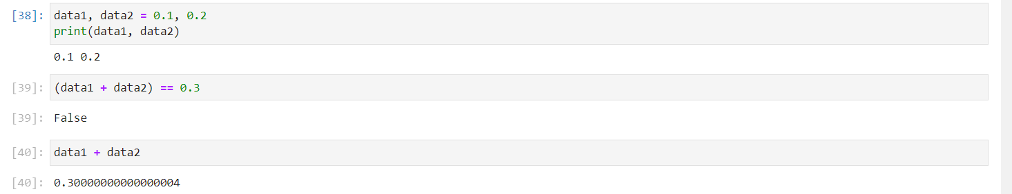 위 코드를 보면 data1과 data2를 더했을 때 0.3이 아니라 살짝 더 큰 값이 나온다.