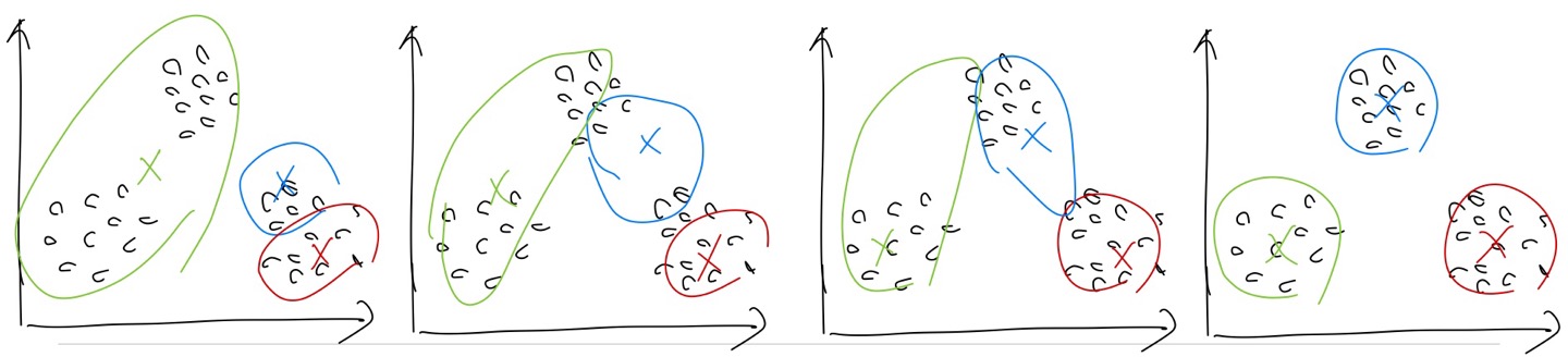 - 3~4를 반복하여 중심점의 변화가 없을 때까지 진행한다.
