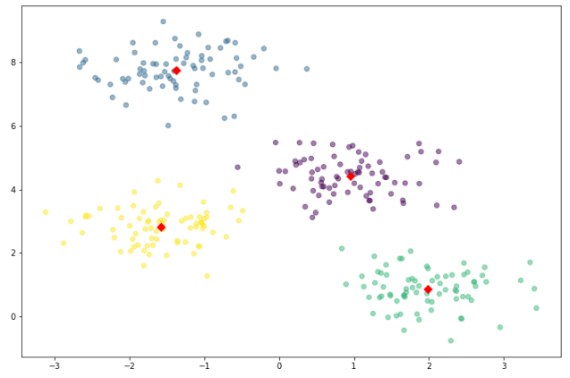 n_clusters=4로 지정해주면 아래와 같이 분류한다.