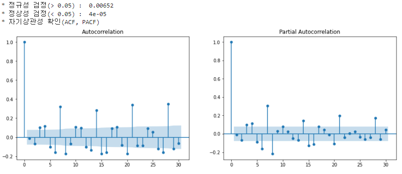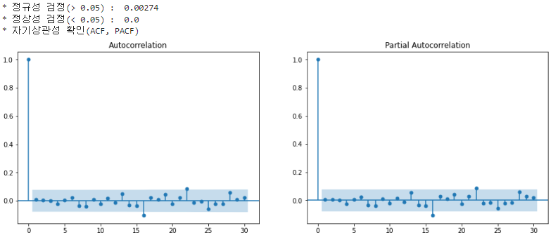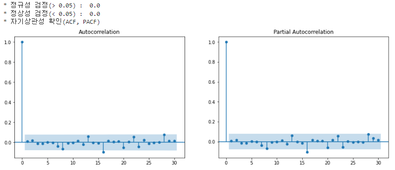 - 평균과 분산이 일정(Stationary) : ADF 검정