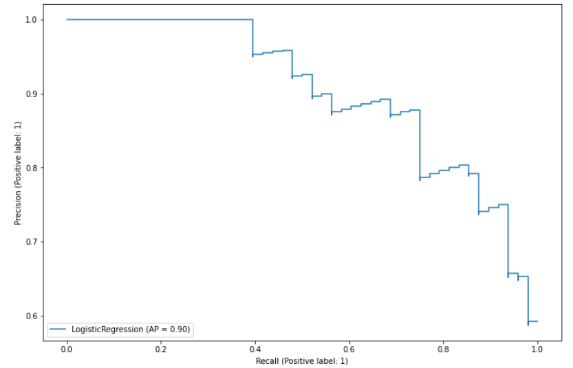 plot_precision_recall_curve의 결과를 저장하고, .average_precision 속성을 불러오면 그래프 아래의 면적을 확인해볼 수 있다.