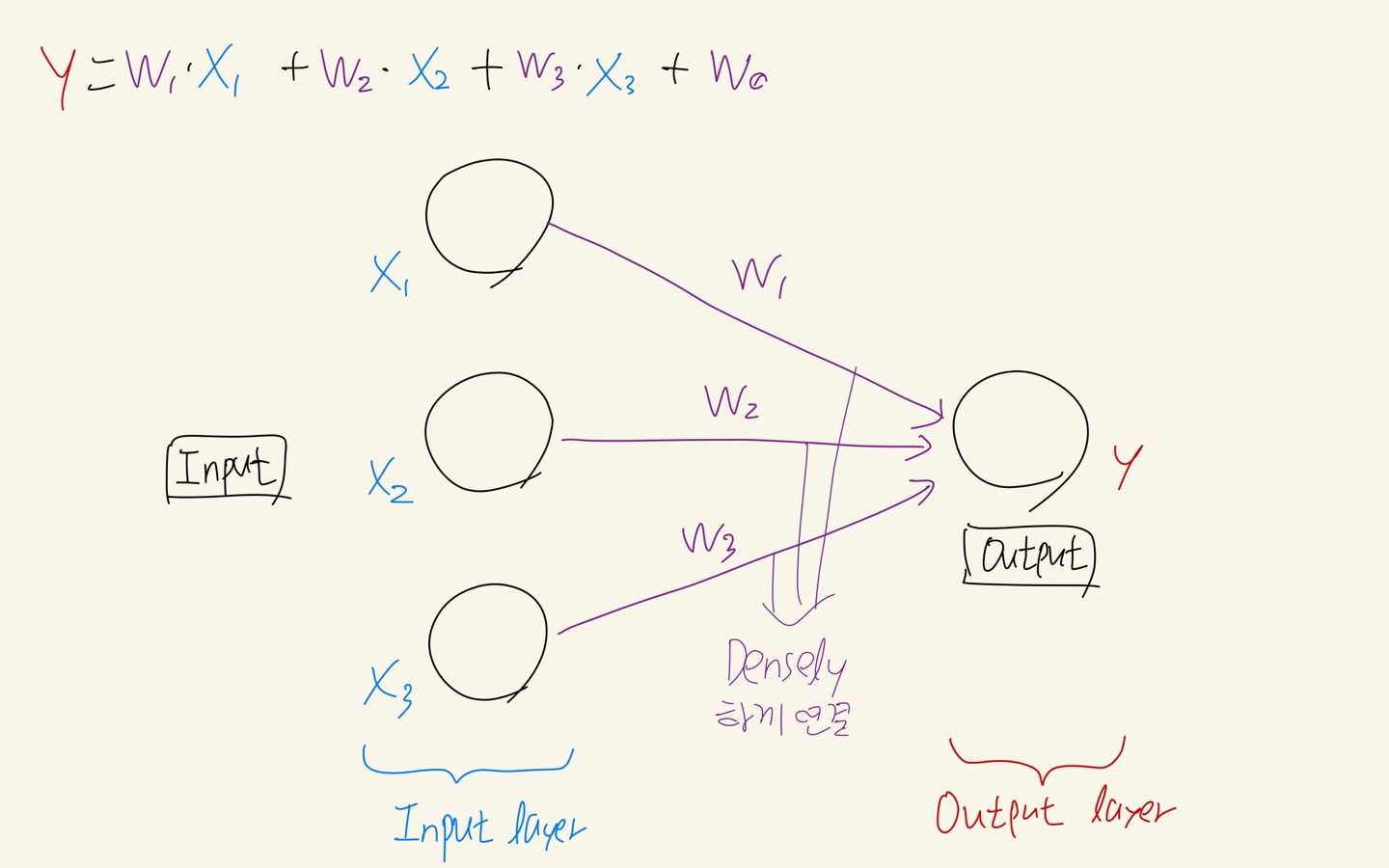 - 인풋 노드들은 아웃풋 노드로 Densely하게 연결되어있다.