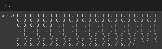 y = to_categorical(y, 3) # y를 3개의 카테고리로 (반복실행 주의)