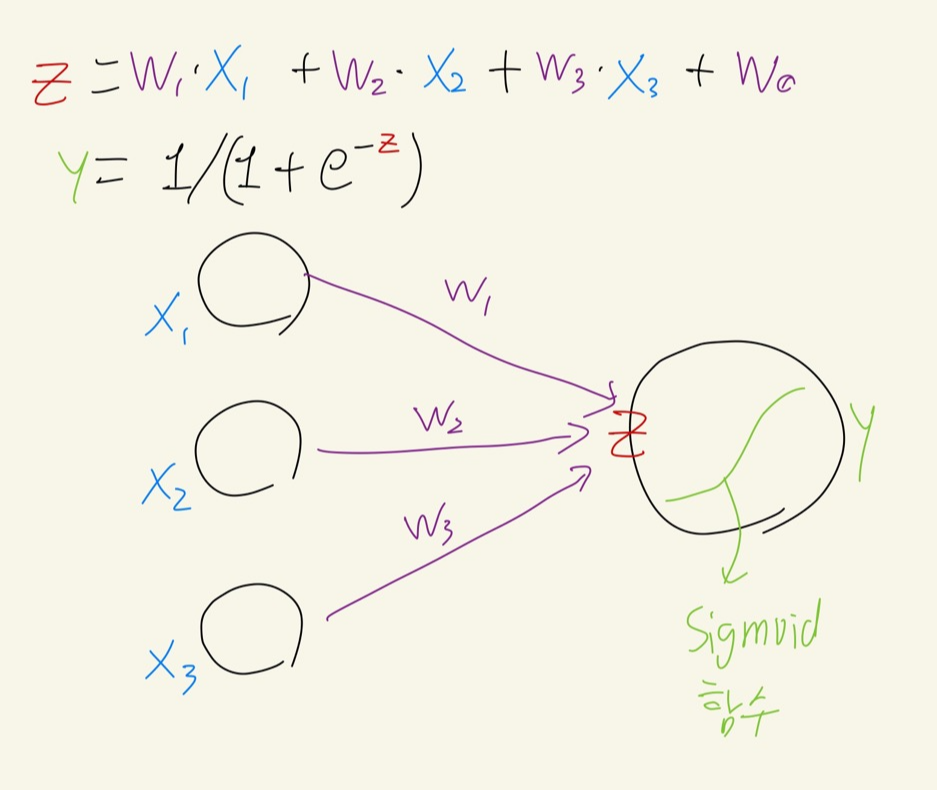 로지스틱회귀를 뉴럴 네트워크의 구조로 이해해보면 다음과 같다.