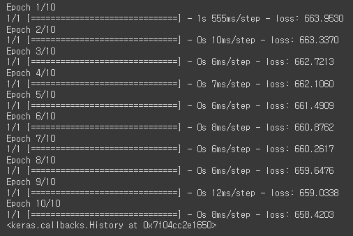 - epochs : 갖고 있는 학습 데이터를 학습시킬 횟수