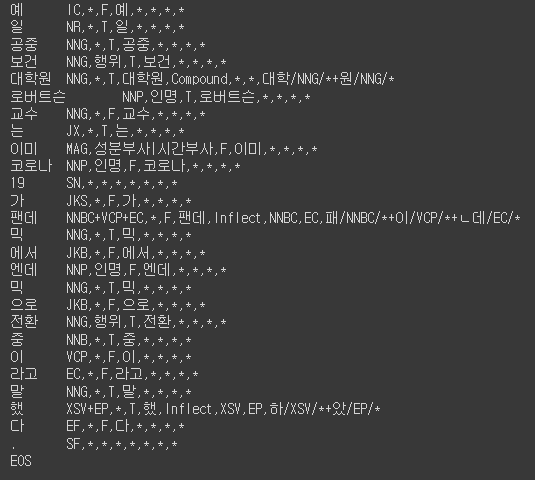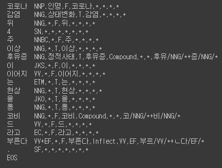Mecab / - / -ko / - / dic 과 롱 / 코비드로 따로 분석된 것을 볼 수 있다.