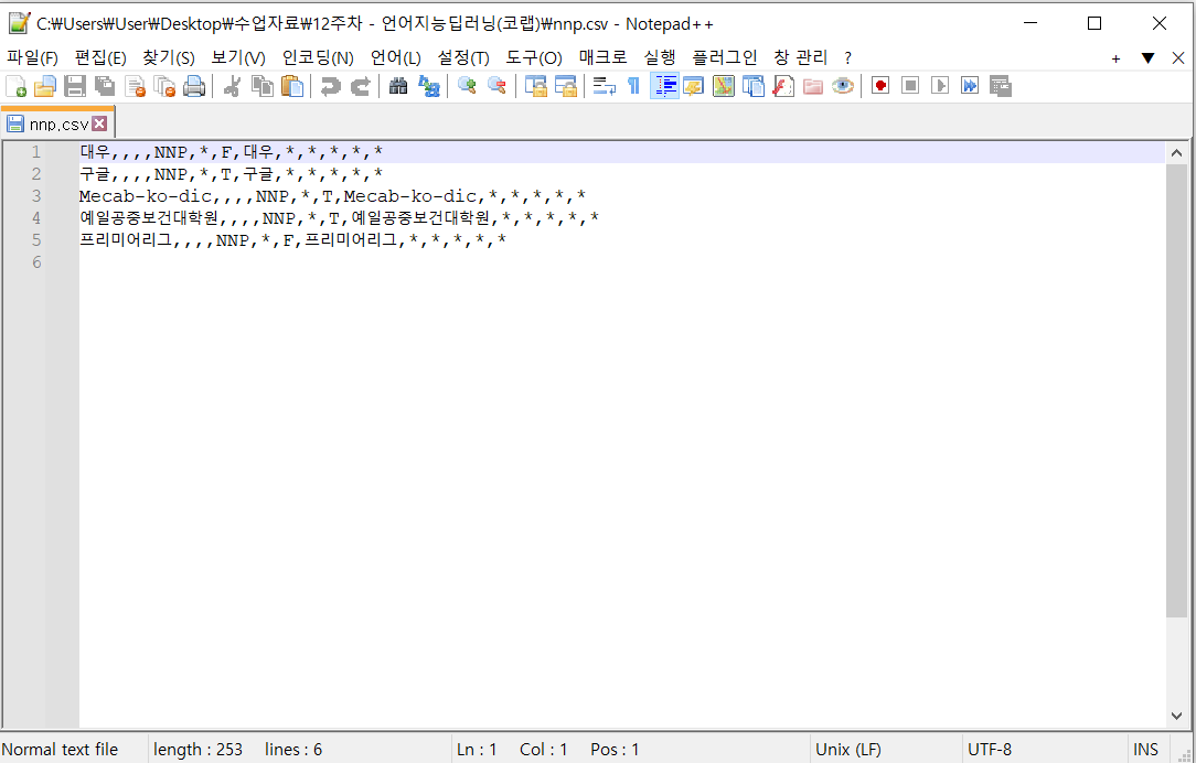 /content/mecab-ko-dic-2.1.1-20180720/user-dic 의 경로를 보면 nnp.csv라는 사용자 사전 파일이 있다.