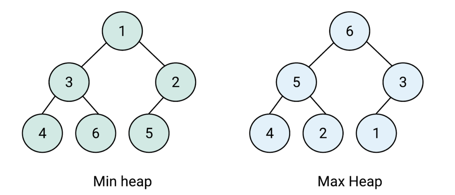 - 최소 힙 : 부모가 자식 노드보다 작음, 가장 작은 값부터 추출