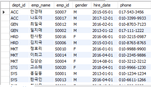 이다. 근데 사실 HAVING 절에서 COUNT(*)를 SELECT문에서 지정해준 별칭인 emp_count를 써도 적용이 된다. 이는 MySQL에서만 가능한 특수한 경우기 때문에 쿼리 순서의 논리성을 위해 그냥 COUNT(*)를 써주는 것이 좋다.