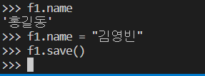 데이터의 수정도 인스턴스를 통해 가능하다. 데이터 수정 시에도 .save()를 해주어야 DB에 적용된다.