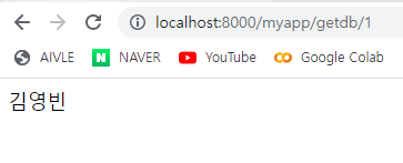 ~:8000/myapp/getdb/id URL의 id값과 일치하는 id값을 갖는 Friend 테이블의 name값을 화면에 출력해주도록 하려고 한다.