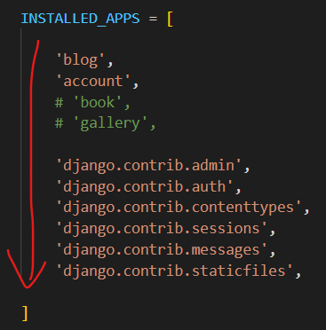 위의 2가지 경로는 템플릿 엔진이 자동으로 인식하고 차례대로 찾아보기 때문에 코드상에서 따로 안적고 html파일의 이름만 적으면 된다. 템플릿 엔진은 settings.py의 INSTALLED_APPS에 등록된 순서대로 app의 폴더를 탐색한다.